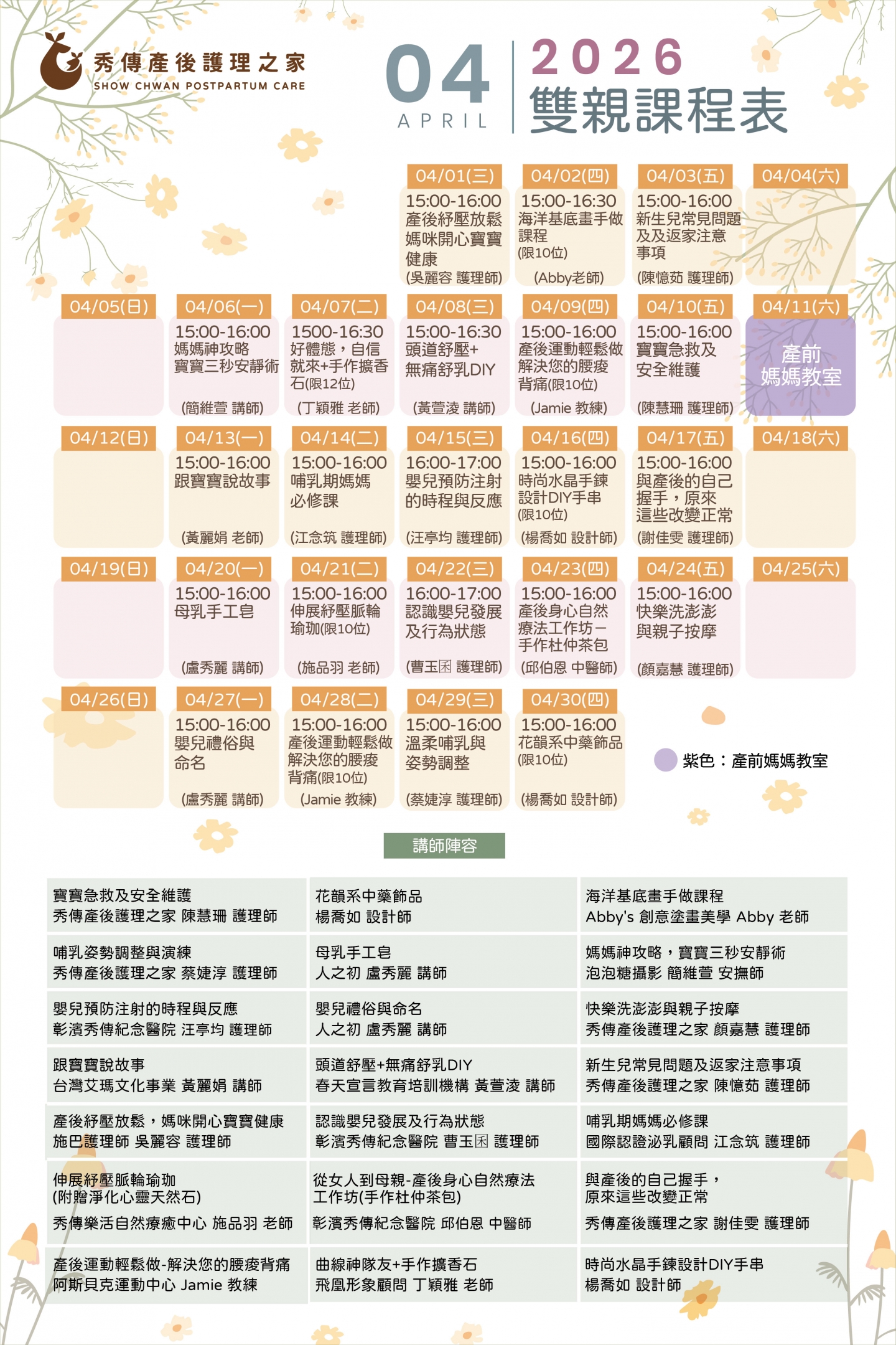 多元化親子課程, 豐富孕期與產後的媽咪們身心靈